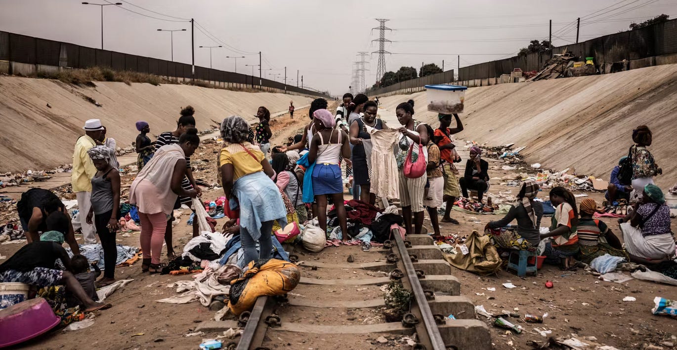 Il corridoio al momento non è altro che una doppia linea nel deserto. Qualche stazione, chioschi polverosi, polli e capre che attraversano i binari, mercati improvvisati per i pochi viaggiatori. La ferrovia è in decadenza da mezzo secolo. Ma ora l’Angola ne ha affidato la concessione a un consorzio europeo, al cui capo c’è una multinazionale svizzera dello sfruttamento delle risorse naturali: Trafigura. Azienda conosciuta da quelle parti: soprannominata l’inevitabile, già aveva fornito l’asfalto per coprire tutte le strade angolane, e poi s’era impossessata di tutti i contratti di esportazione degli idrocarburi nazionali - che rivendeva agli angolani una volta raffinati. Un tribunale di Ginevra ha stabilito che l’affare era costato 5 milioni di dollari di bustarelle (e ne aveva resi 143 di profitti). Poco importa: dal 2022 Trafigura ha ottenuto, dagli stessi funzionari, battendo la concorrenza cinese, anche il Corridoio di Lobito, per trent’anni.