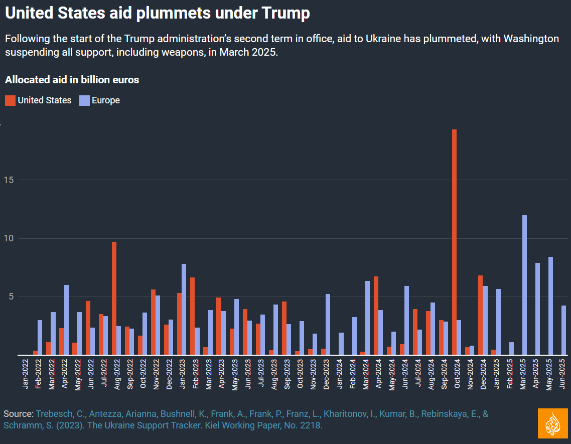3. Prestiti. Chiusi i rubinetti USA (vedi tabella sotto), Zelensky deve battere cassa a una non euforica Europa - e infatti ha ricominciato i suoi pellegrinaggi nel Vecchio continente. Si è parlato di versare all’Ucraina i depositi bancari russi sequestrati, ma l’accordo su questa misura molto controversa non c’è. Si temono in fatti ritorsioni di vario tipo, oltre alla fuga punitiva (in solidarietà alla Russia) o preventiva (perché dovrei tenere i soldi in Europa se poi me li sequestri?) di capitali di altra provenienza.