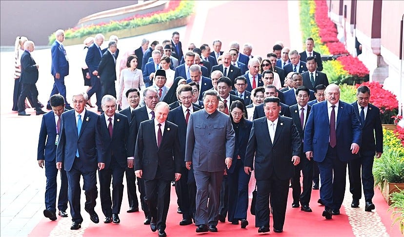 7. Ha bruciato i deliri di grandezza della Russia. Sì, Putin ha giocato Trump. Ma ci vuole poco. A Pechino, Putin era la spalla di Xi, alla pari col nordcoreano Kim Jong-un! [foto, visualizzazione plastica del blocco orientale]. Eh sì, il Cremlino avrebbe già perso in Ucraina, senza la Cina - e la Corea del Nord. Non sarà gratis.