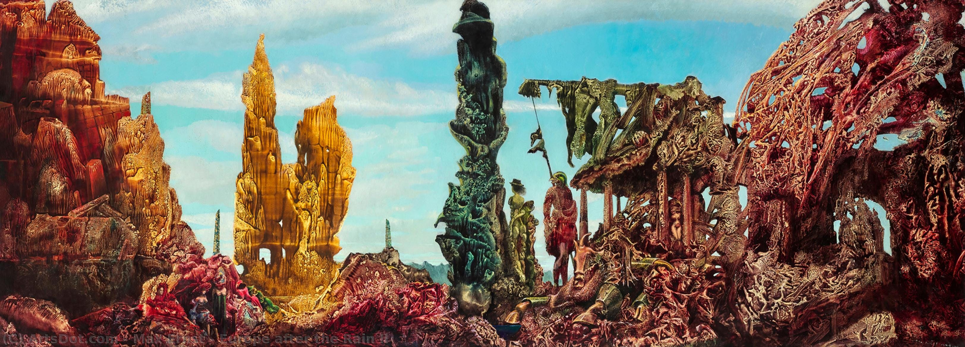 L'Europa dopo la pioggia (II), intitolò Max Ernst un grande dipinto che completò fuggitivo in America dall'Europa occupata dai nazisti. Un indefinibile panorama desolato e decomposto, dove due solitarie figure semiumane campeggiano tra i resti dismessi di "qualcosa". Qualcosa di grande che non c'è più. Il cielo è limpido e azzurro: le nuvole sono passate, ecco ciò che hanno lasciato.