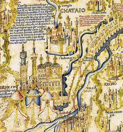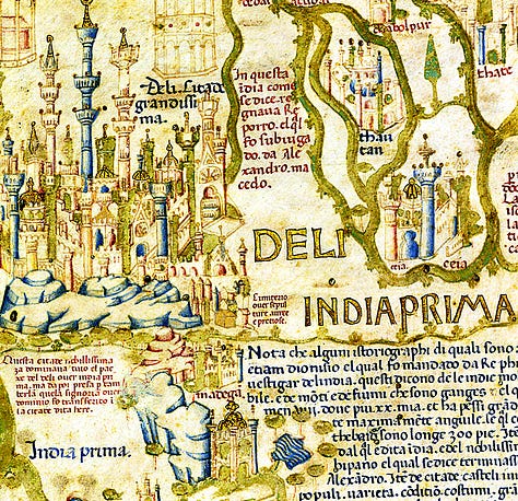 Altre informazioni furono tratte dalle opere classiche, di Tolomeo e Plinio per esempio. O dai diari di mercanti come Piero Querini, naufrago alle Lofoten coi suoi 800 litri di malvasia, pochi anni prima, salvato dai pescatori di merluzzo delle isole - chissà che bella bevuta si saranno fatti per festeggiare. Oppure di resoconti come quelli di Marco Polo e Odorico da Pordenone, che era arrivato a Pechino passando da Mumbai e Sri Lanka all'andata, e dal Tibet al ritorno. Poi morì andando a Pisa.